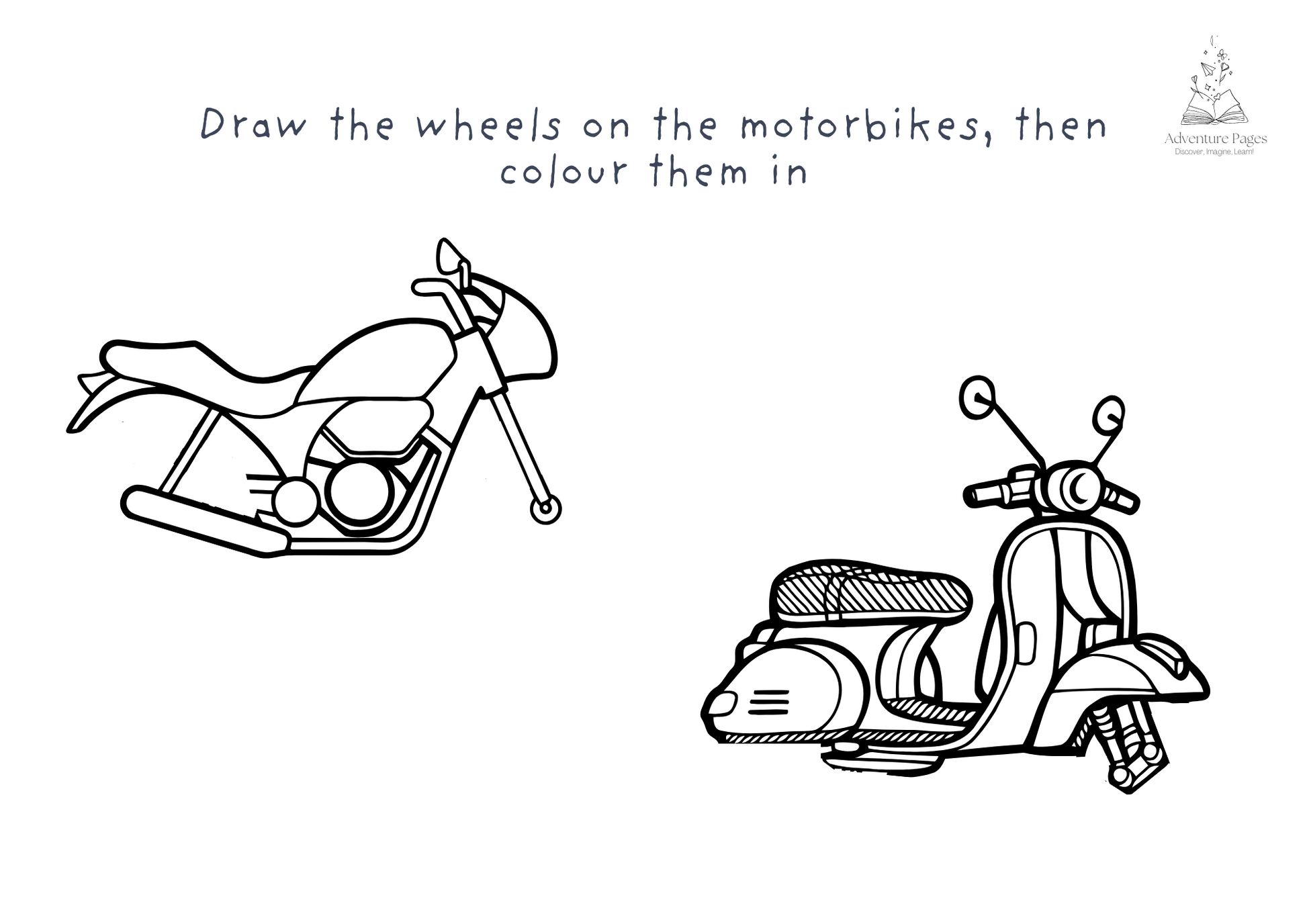 ✏️ Creative drawing prompts like adding wheels to vehicles