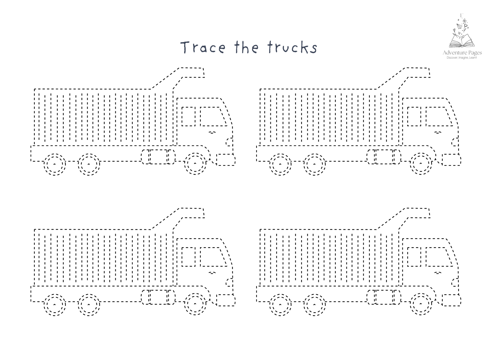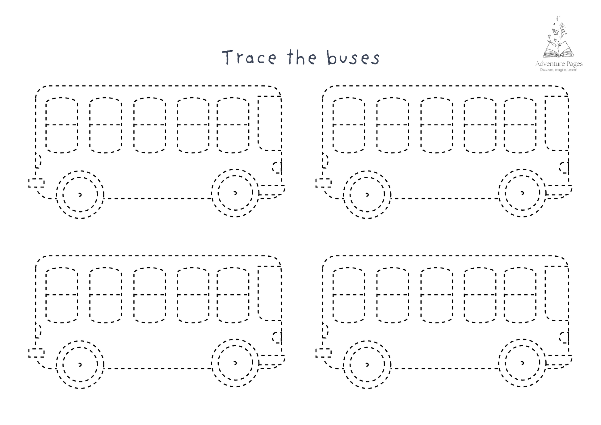 ✍️ Tracing practice with buses, helicopters, trains, and trucks